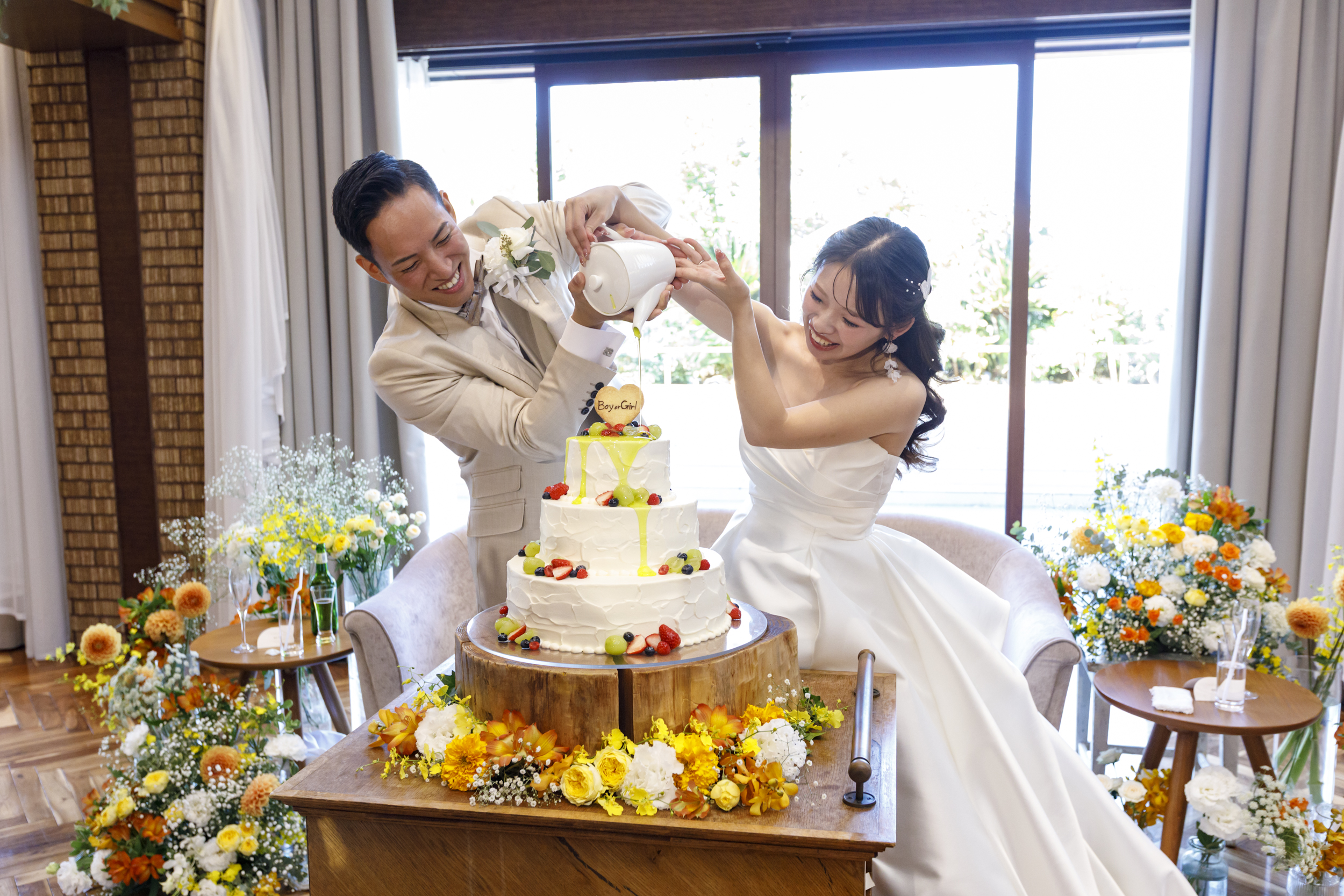 そして、赤ちゃんの性別を発表するウエディングケーキのドリップソース。