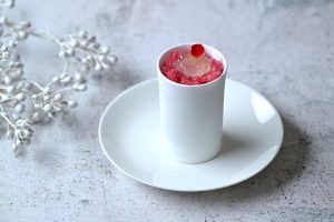 今回、初めて作らさせていただいたのは「ローズヒップのグラニテ〜レモンジュレ〜」になります。